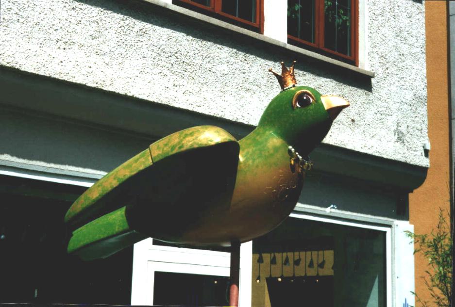 Die Legende vom Ulmer Spatz ist Grundlage für das Wahrzeichen Ulms, dem Spatzen, dem die Ulmer als Dank – so heißt es – ein Denkmal aufs Münsterdach setzten. 1858 war er auf dem Langhaus des Münsters gelandet. Wie und wann diese Sage entstand, ist unklar. Der Historiker Hans-Martin Ungericht sieht im Ulmer Altstadt-Grundriß eine Vogelfigur, die einen Strohhalm im Schnabel hält. Erste schriftliche Hinweise auf die Verbreitung der Sage konnten im Jahr 1826 ausgemacht werden. Angeblich wurden ähnliche Geschichten bereits in Schleswig-Holstein verbreitet und man vermutet, daß der Ulmer Kunsthändler Ulrich Theodor Nübling, der als junger Mann beim dänischen Militär gedient hatte, diese Legende vom Norden nach Ulm brachte. In Ulm wurde 1842 erstmals ein Gedicht über den Spatzen veröffentlicht. Diese Version ist für die Ulmer recht vorteilhaft, da darin der Teufel seine Hand im Spiel hat. Der Fortschritt des Münsterbaus ärgert ihn, deshalb stürzt er die Bürger in Verwirrung. Erst der Spatz befreit sie aus ihrer Verblendung. Der Spatz wurde aber schon viel früher mit Ulm in Verbindung gebracht; bereits 1573 wurden die Ulmer Truppen in der Armee des Schwäbischen Kreises als "Spatzenschützen" bezeichnet. Wie auch immer die Ulmer zu ihrem Spatzen kamen, es zeigt, daß sie es verstanden haben, den ursprünglichen Spottnamen in ein Symbol der Schlauheit umzudeuten, mit dem sie sich gerne (wenn auch nicht immer zurecht) identifizieren :-) .